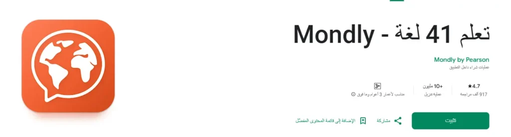 يركز موندلي على مهارات المحادثة العملية باستخدام تقنيات مبتكرة بما في ذلك روبوتات الدردشة بالواقع المعزز (AR). يحاكي التطبيق حوارات واقعية حيث ترد على شخصيات افتراضية، وتبني الثقة قبل التفاعلات في العالم الحقيقي. يقيّم التعرف على الكلام نطقك في الوقت الفعلي.
