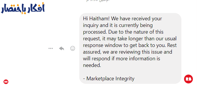 الرد الذي وصلني عن طريق الفيس بوك |